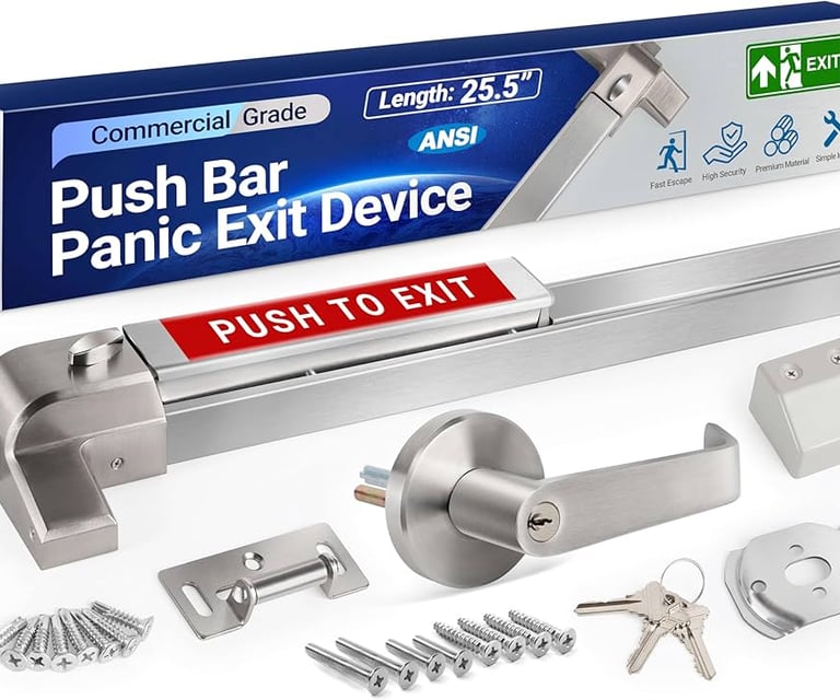 Ironmongery refers to essential door hardware components such as hinges, locks, handles, closers, panic bars, and accessories that ensure doors function safely, securely, and efficiently.